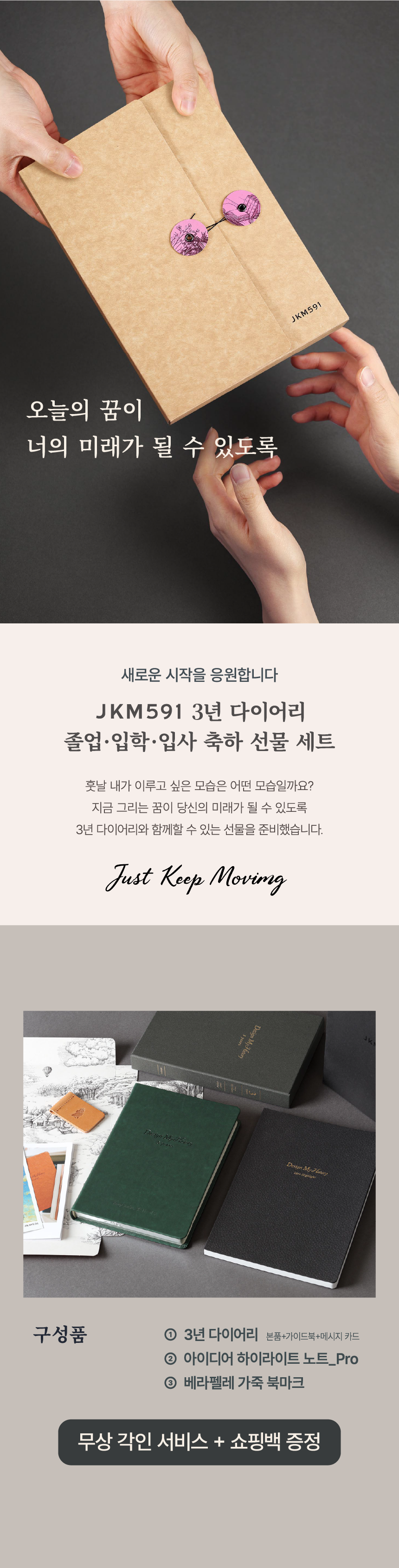 [SALE EVENT] JKM591 3년 다이어리 졸업·입학·입사 축하 선물 세트